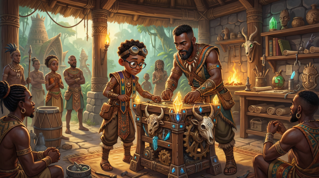 One day, after a lab explosion and a lecture from his professor, Adama caught the attention of Amara, who saw a kindred spirit in him. She invited him to join her mystery-hunting team, and he agreed under the condition that he could